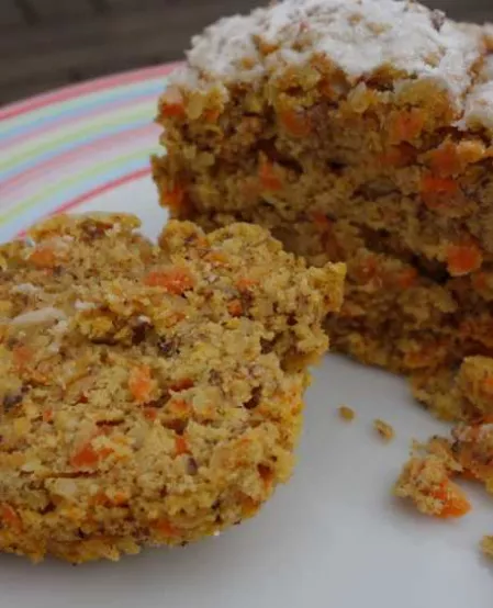 - Aus dem Ofen nehmen und im Blech 10 Minuten auskühlen lassen. Herauslösen, auf eine Platte setzen und weitere 10 Minuten abkühlen. Dann das pudrige Erythrit in ein Haarsieb geben und die fertigen Muffins damit bestäuben.