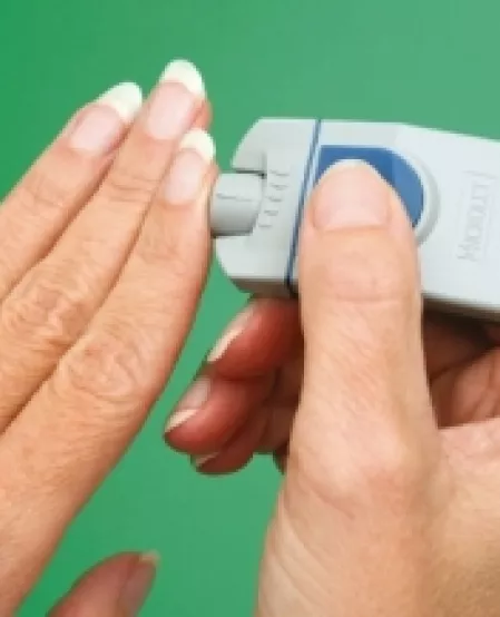 Für die Blutzuckermessung wird das Blut meist an den Fingern gewonnen. Dafür gibt es sogenannte Stechhilfen mit einer herausschnellenden spitzen Lanzette, sodass der Stich wenig Schmerzen verursacht. Die Lanzetten für die Stechhilfen können mehrfach benutzt werden. Am besten ist es, an der Fingerbeere etwas seitlich zu stechen, dort ist es meist weniger empfindlich. Vorher sollten Sie nach Möglichkeit ihre Hände massieren und mit warmem Wasser waschen, um einerseits Reste von zuckerhaltigen Nahrungsmitteln zu entfernen, andererseits um die Durchblutung zu fördern.